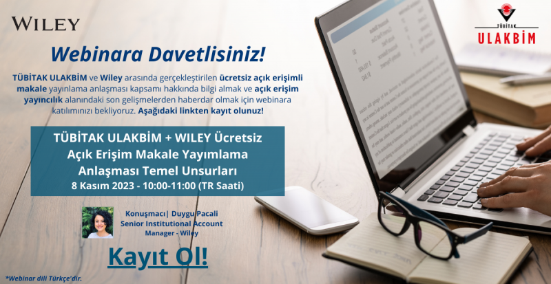 TÜBİTAK ULAKBİM ve Wiley arasında gerçekleştirilen ücretsiz açık erişimli makale yayınlama anlaşması kapsamı hakkında bilgi almak ve açık erişim yayıncılık alanındaki son gelişmelerden haberdar olmak için webinara katılımınızı bekliyoruz.