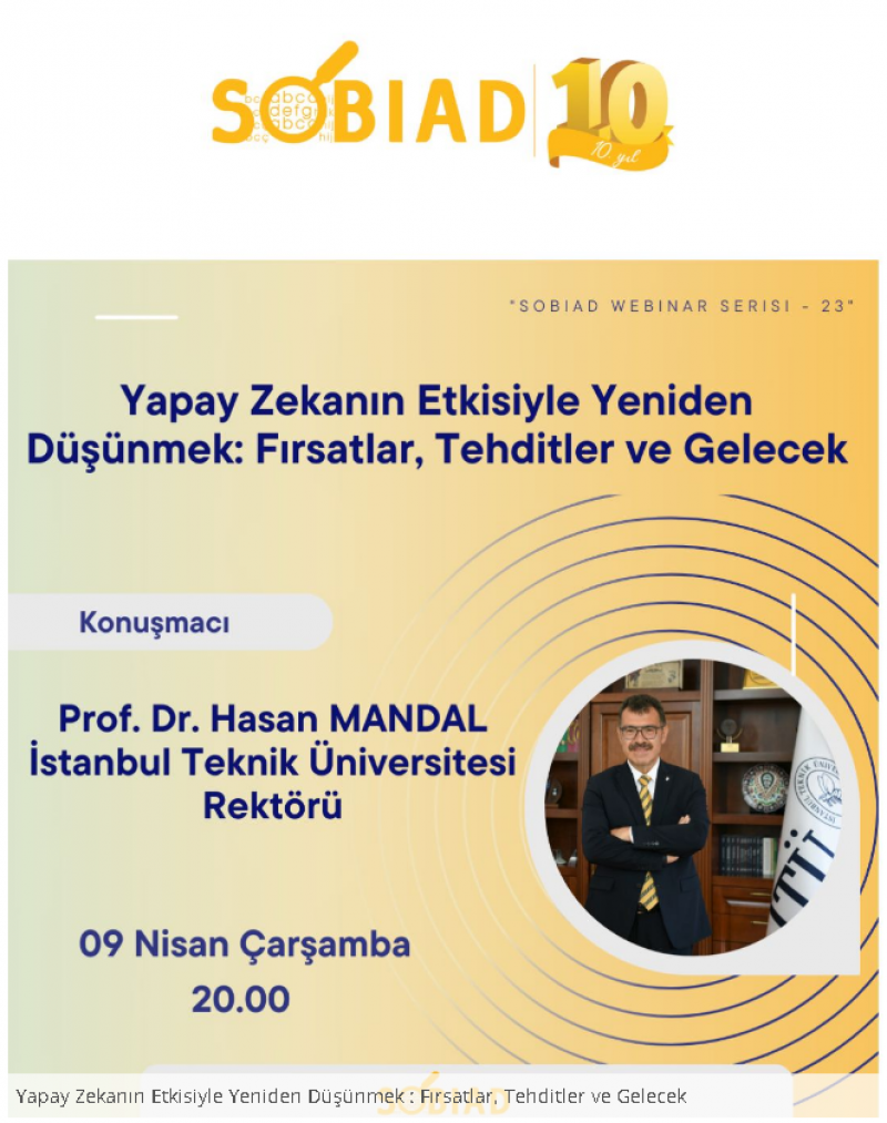 “Yapay Zekanın Etkisiyle Yeniden Düşünmek: Fırsatlar, Tehditler ve Gelecek” konulu bir webinar gerçekleştirilecektir.