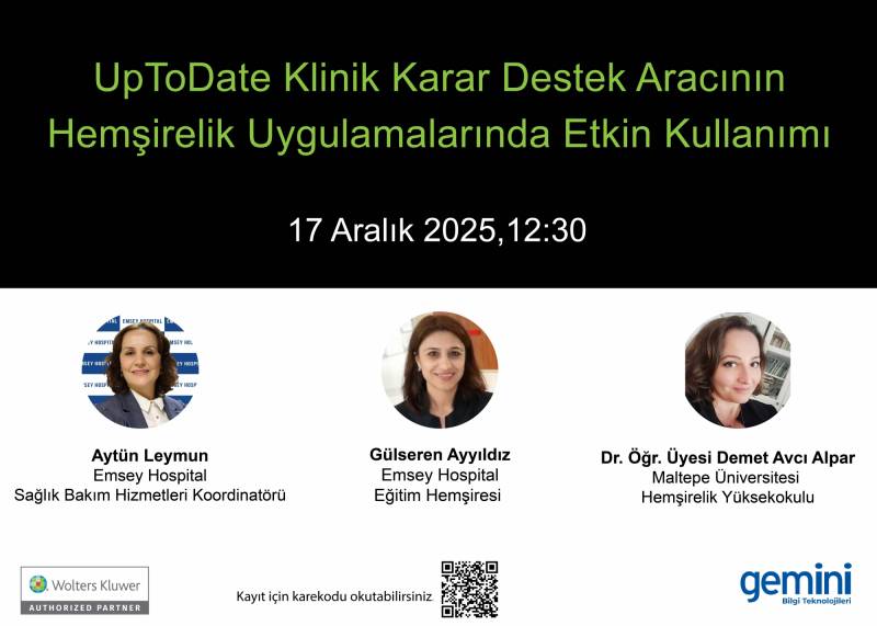 Bu toplantıda; UpToDate klinik karar destek aracının hemşirelik bakım süreçlerinde nasıl etkin şekilde kullanılabileceği, hasta güvenliğine ve bakım kalitesine sağladığı katkılar ele alınacaktır.