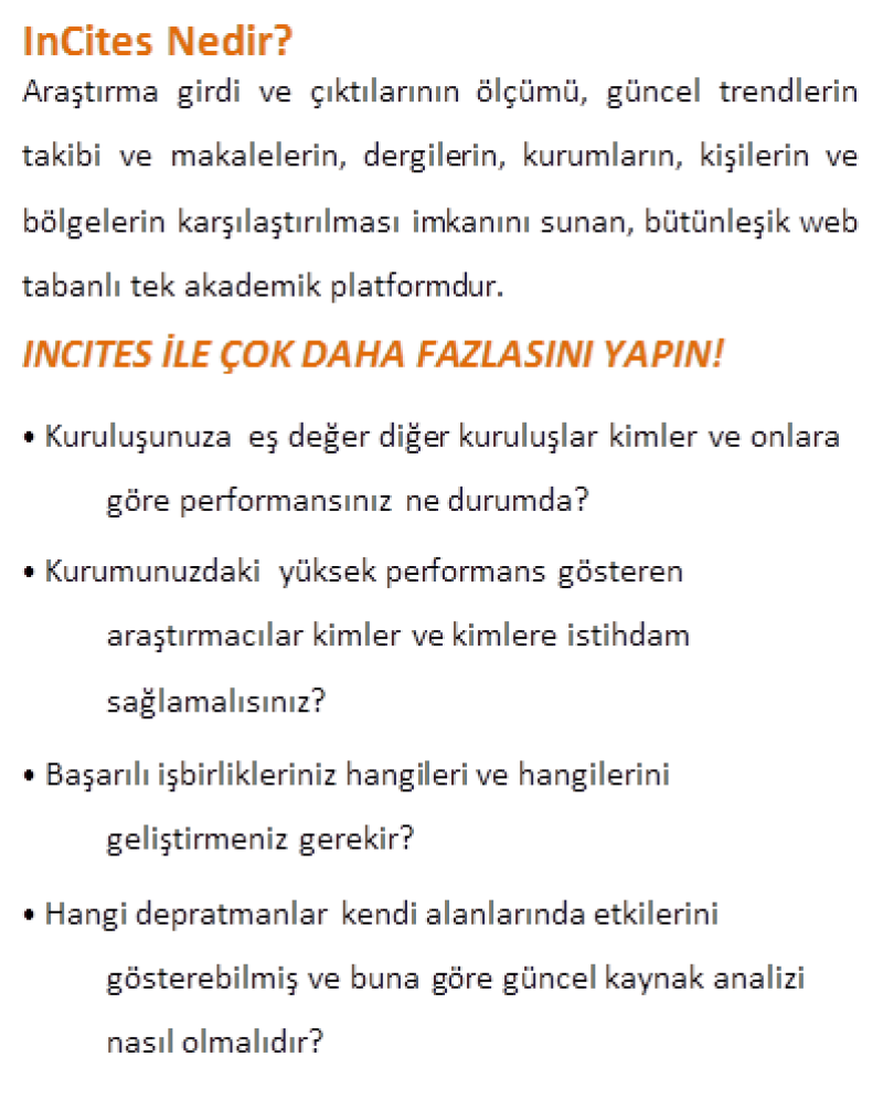 Online Türkçe Tanıtım ve Kullanım Sunumu: https://prezi.com/qpfepaqxd5hq/incites-tantm-ve-kullanm-sunumu/