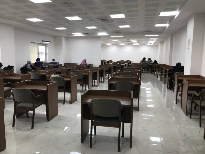 Kütüphane alanında Süreli Yayınlar, Danışma Kaynakları, Tezler, Ödünç Verme ve Danışma birimleri yer almaktadır.